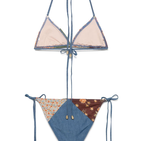 Blue halterneck tie fastening tie-fastening straps triangle cup be mindful to try on swimwear over your own garments. lucky printed bikini set size and fit - this piece fits true to size. we recommend you get your regular size. model is 1,75m / 5ft 8in wearing size 1 (num)