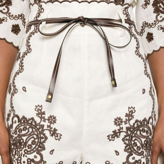 scallop edge ascension embroidered linen shorts size and fit - this piece fits true to size. we recommend you get your regular size. model is 1,75m / 5ft 8in wearing size 1 (num)